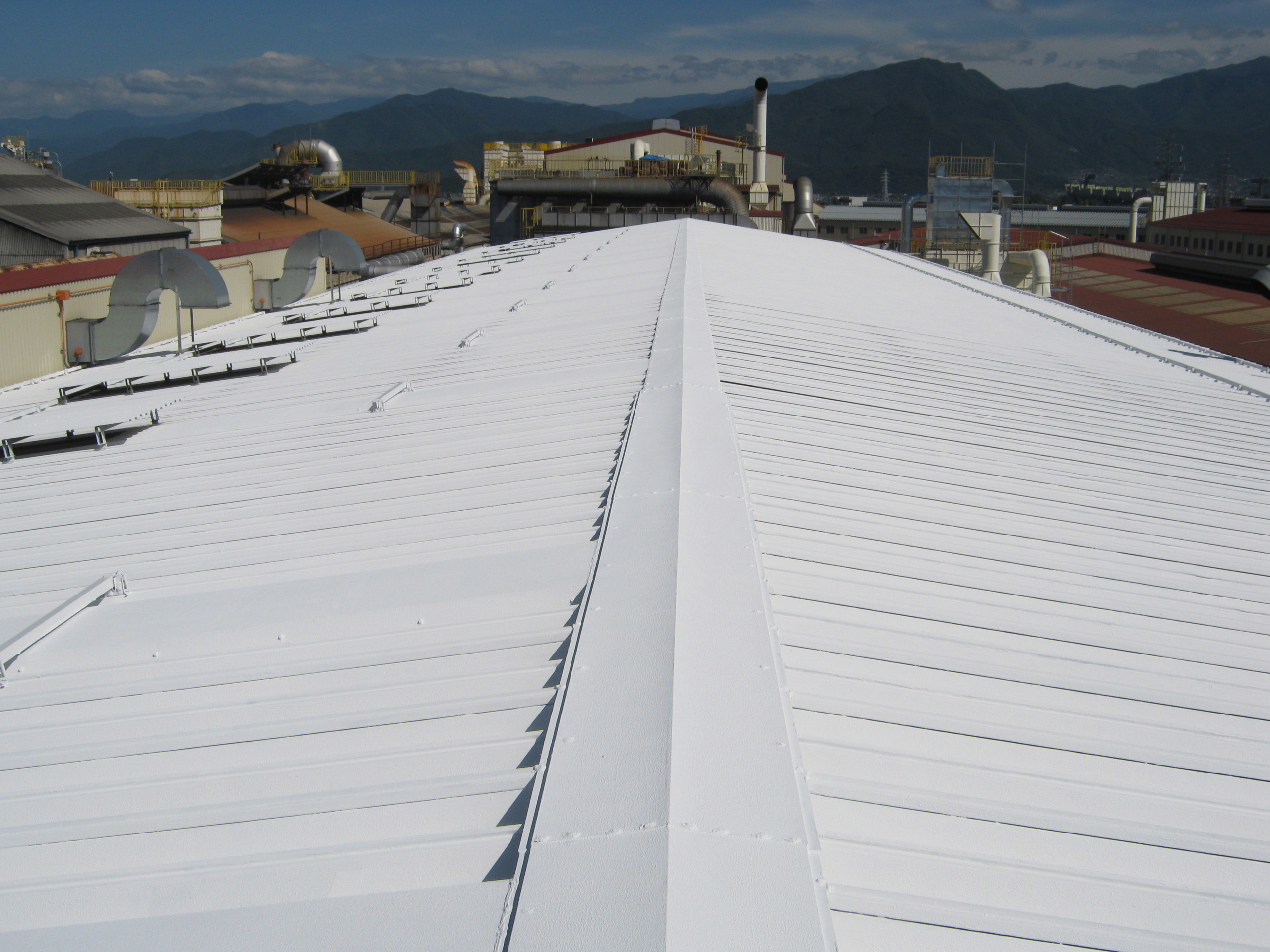工場内部(2階)の温度を作業員さんの環境改善(熱中症対策)のために下げたいという事で、屋根に断熱塗料ガイナ塗装をご提案させていただきました。